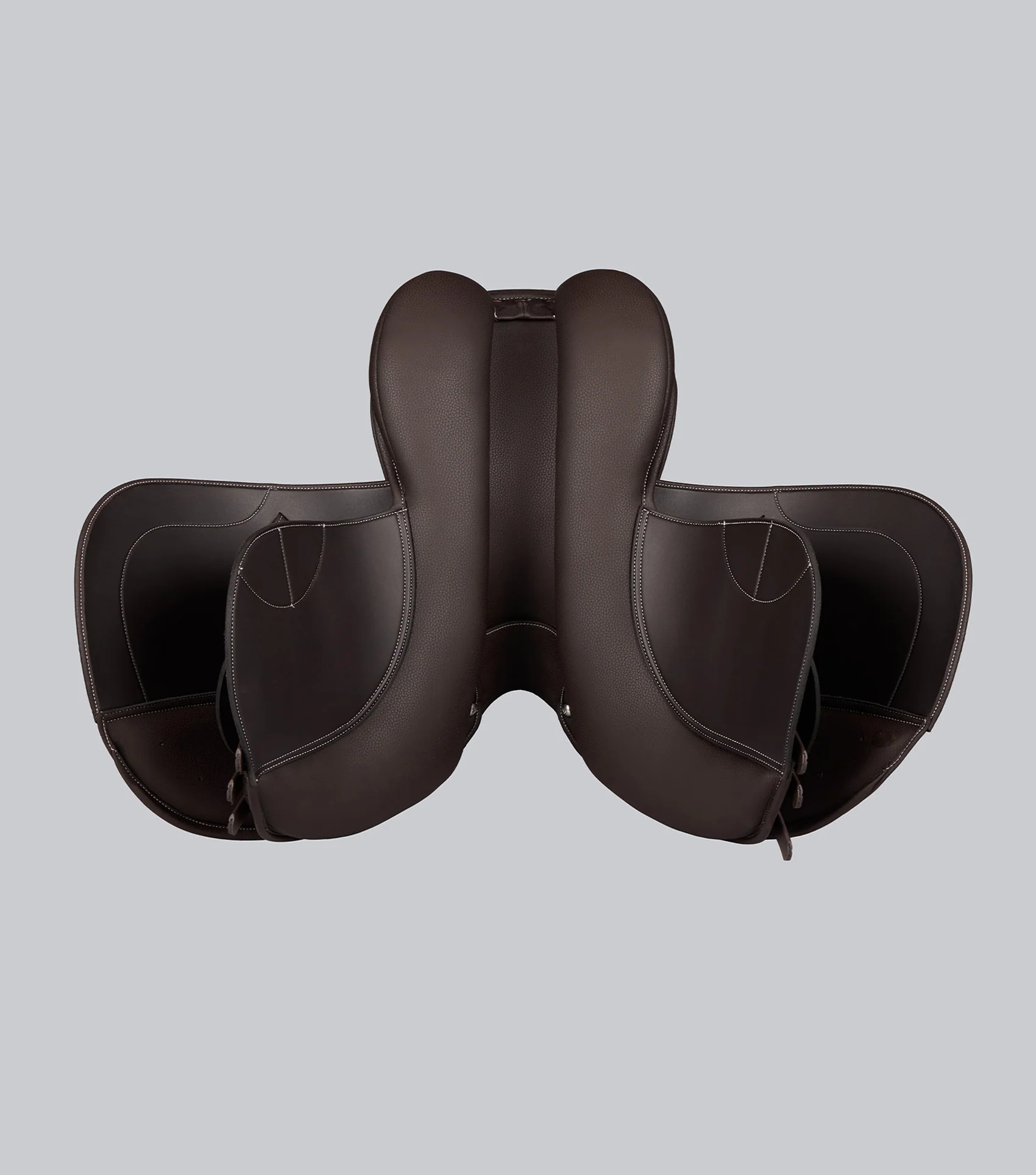 Built for rider adaptability, the saddle includes four moveable knee and thigh blocks (two per flap), allowing personalised support and alignment. The ergonomic seat and supportive knee rolls promote correct position and confidence over flatwork or fences.